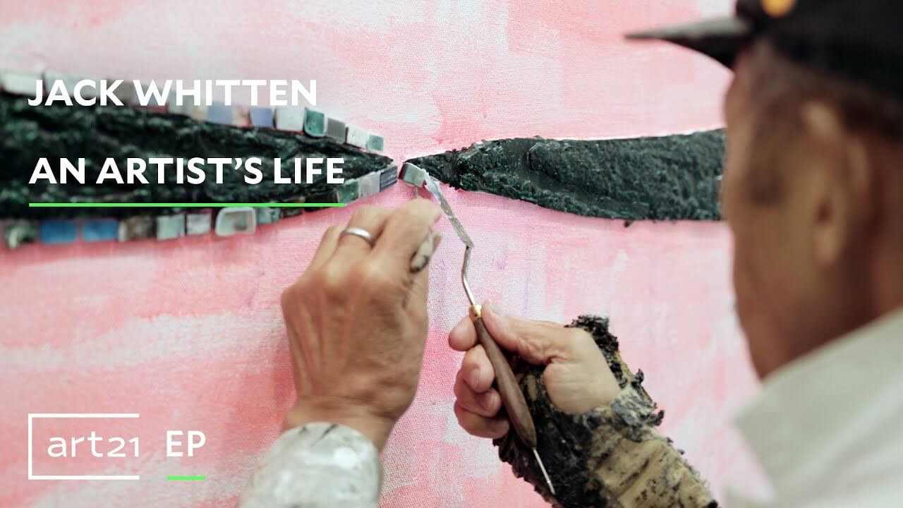 Whitten's "developer"โa twelve-foot-long wooden rake invented by the artist to move large amounts of acrylic paint in a single gesture-resulted in his "slab" paintings, large color fields defined by a single movement.